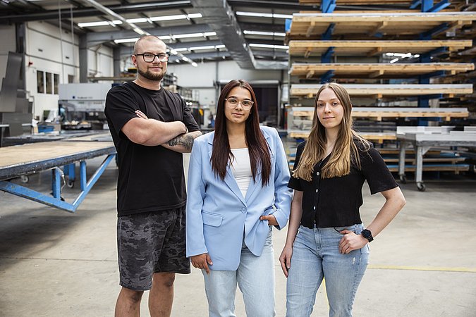 Ob Metall, Maschinen oder Büro – bei uns bekommst du mehr als nur eine Ausbildung. Wir sind ein eingespieltes Team, das sein Wissen gerne weitergibt. Hier lernst du nicht nur, wie man Bleche präzise bearbeitet oder Aufträge professionell organisiert, sondern auch, wie viel Freude es macht, gemeinsam an etwas Großem zu arbeiten.