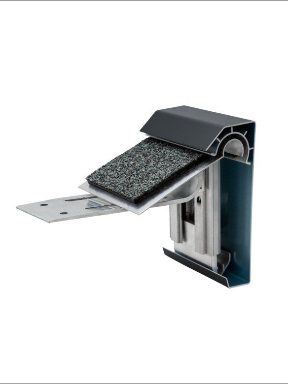 SYMAT® Perfect ist ein mehrteiliges höhenverstellbares und schwenkbares Dachrandabschlussprofil aus Aluminium, stranggepresst oder aus gekanteten